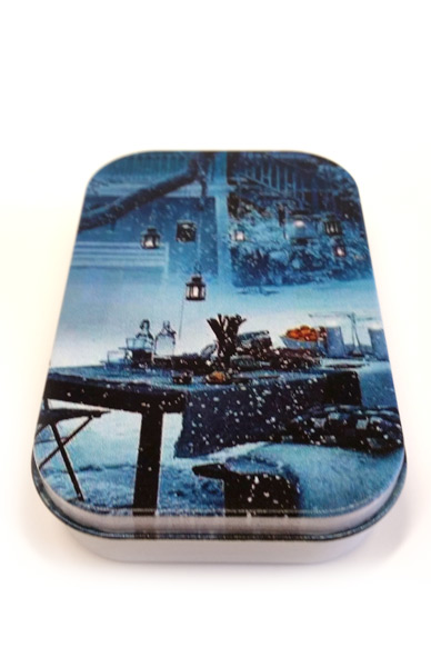 PACKAGING: Scatoletta in alluminio con coperchio, stampata su un lato.